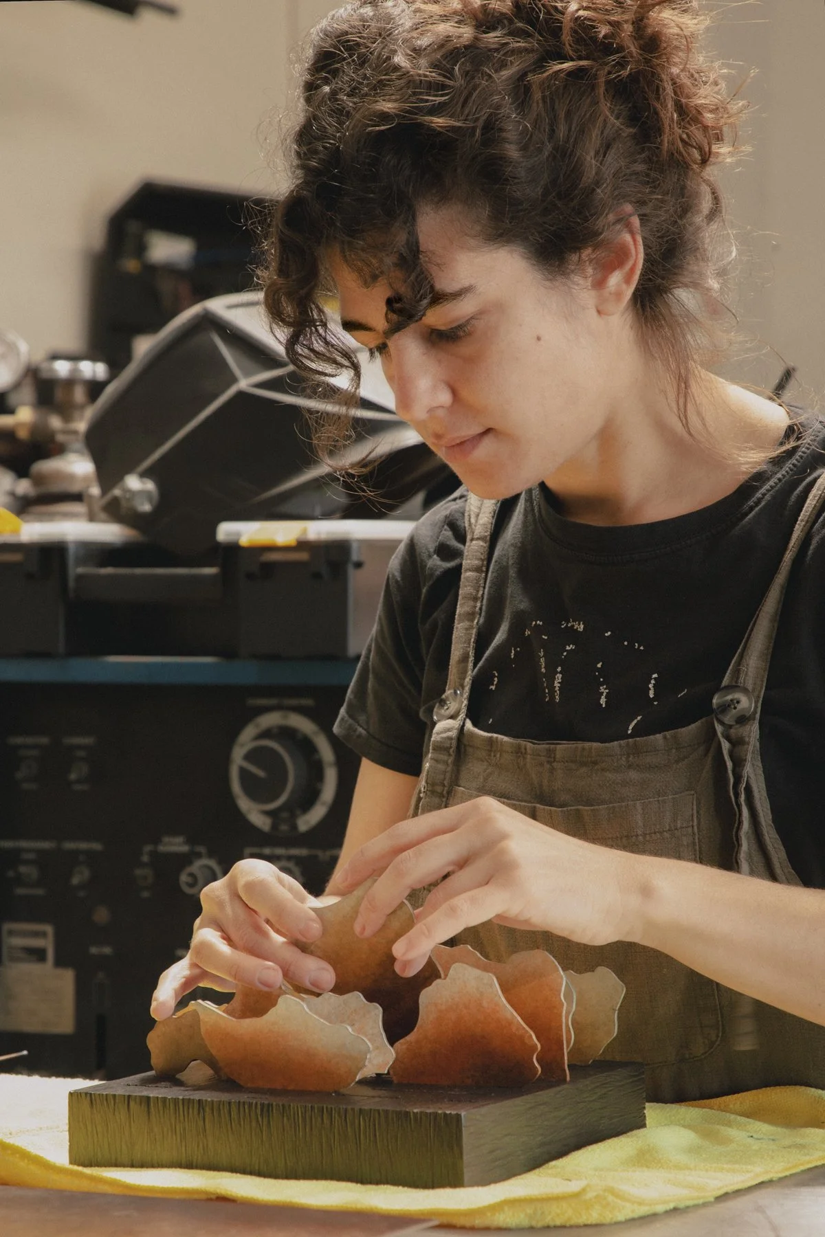 Daniella attended The School of the Art Institute of Chicago, earning her BFA in Fiber and Materials Study in 2014, where she focused on both contemporary and traditional weaving practices before transitioning to metal.